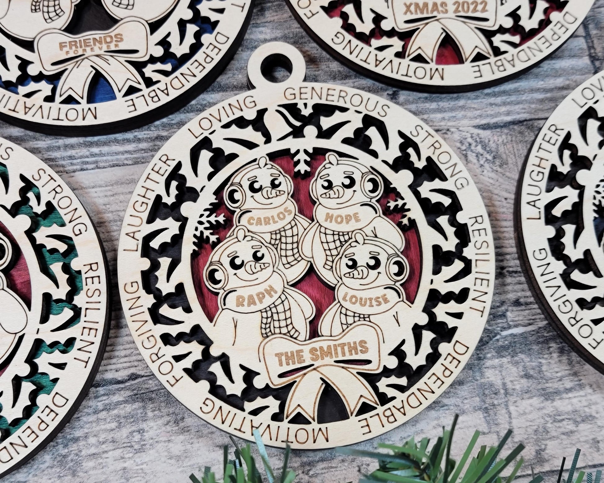 Each ornament can be customized with your family members’ first and last names, or a special message, making it a truly one-of-a-kind keepsake. Whether it’s for your own tree or as a thoughtful gift, these ornaments bring warmth, joy, and personality to your holiday décor.