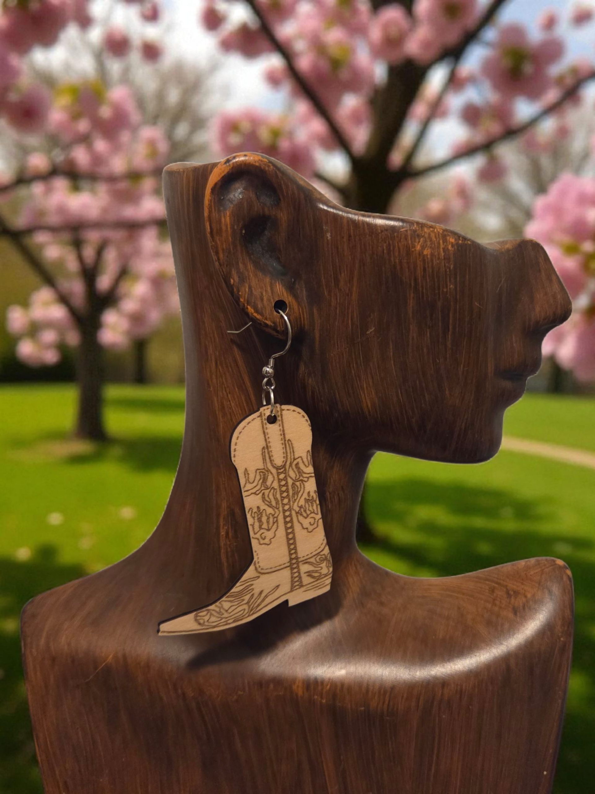 Make a bold statement with these Large Cowgirl Boot Earrings, crafted from lightweight basswood and adorned with eye-catching design details. Measuring 1¾ inches wide by nearly 3 inches long, these standout pieces deliver Western flair without the weight. Featuring durable stainless steel hooks for all-day comfort, they arrive gift-ready—perfect for yourself or the cowgirl in your life. Embrace your inner rodeo spirit with earrings that turn heads and spark conversations.