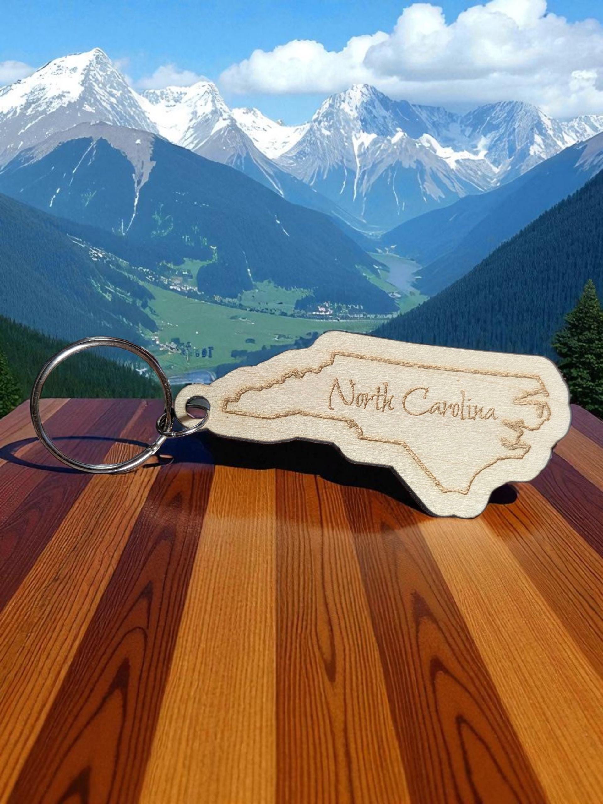 Celebrate your love for the Tar Heel State with this beautifully engraved North Carolina-shaped keychain. Crafted from smooth basswood and engraved with the state name “North Carolina,” this lightweight yet durable keychain is perfect for keys, bags, or as a thoughtful gift.
