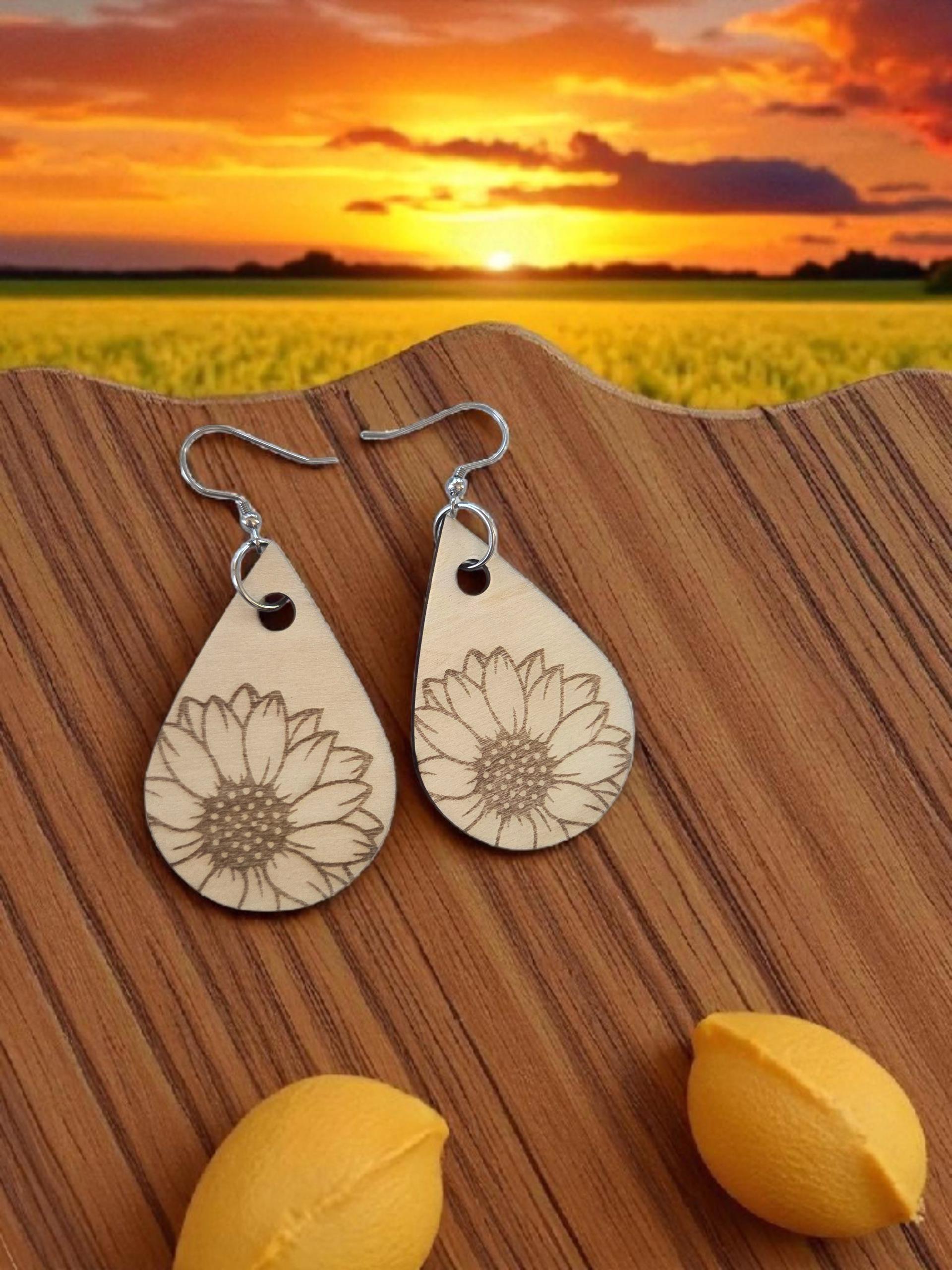 These earrings are ideal for nature lovers, sunflower enthusiasts, or anyone who appreciates unique, handcrafted jewelry. The wood is sealed for durability while maintaining a natural look.