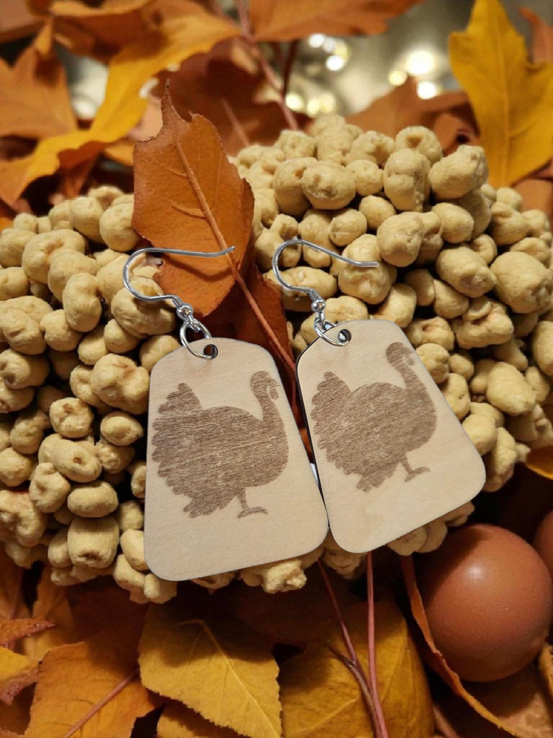 Add a rustic and festive touch to your look with these turkey-engraved wooden earrings, perfect for fall, Thanksgiving, or nature lovers! Each pair is laser engraved on natural basswood, creating a lightweight yet detailed accessory that’s both eye-catching and comfortable.