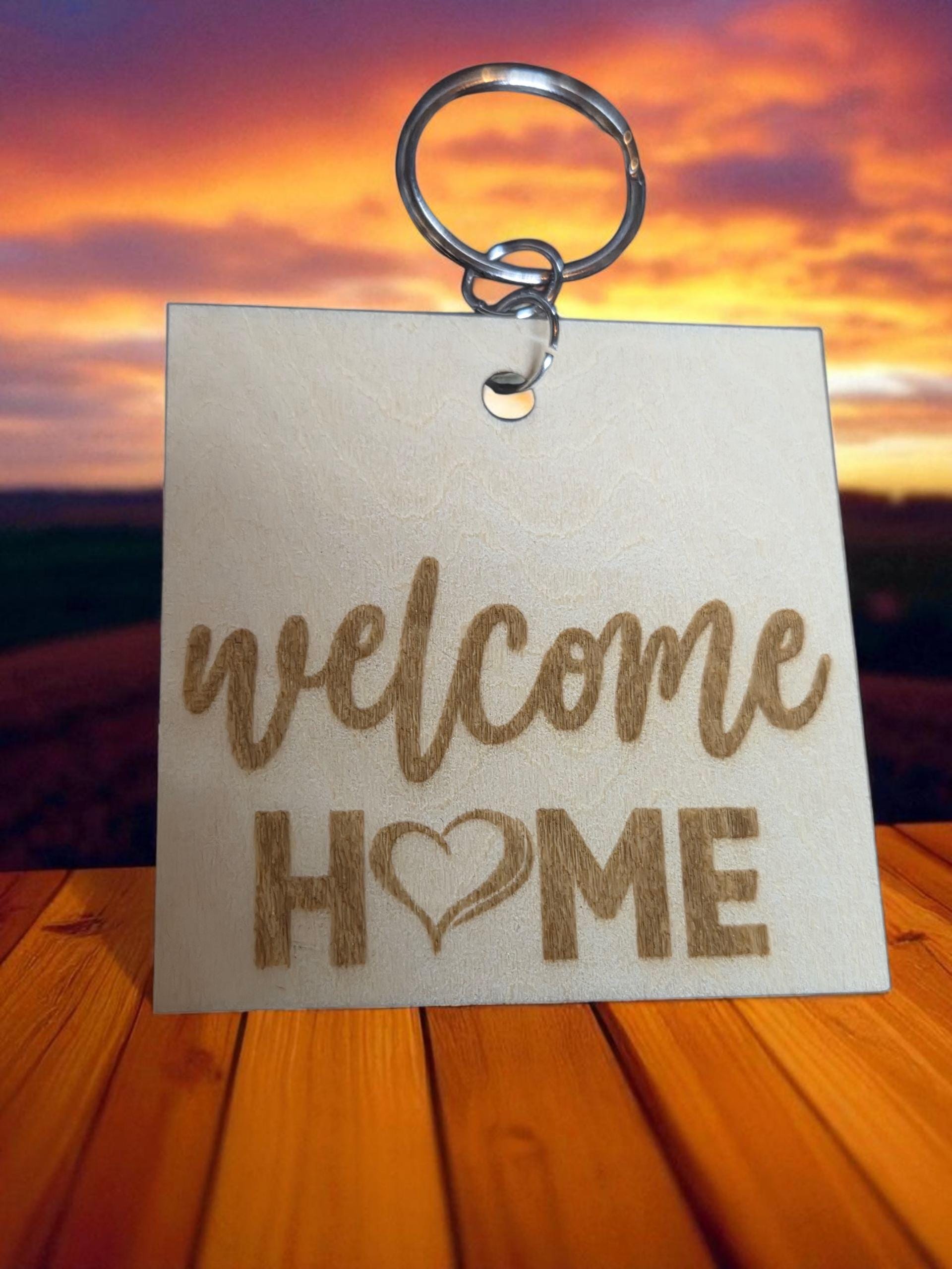 Welcome your loved ones or treat yourself with this elegant "Welcome Home" keychain. Crafted from durable silver-tone metal, this square keychain features a sleek, polished finish and a classic keyring attachment. The design is simple yet meaningful—perfect for new homeowners, returning family members, or housewarming gifts.