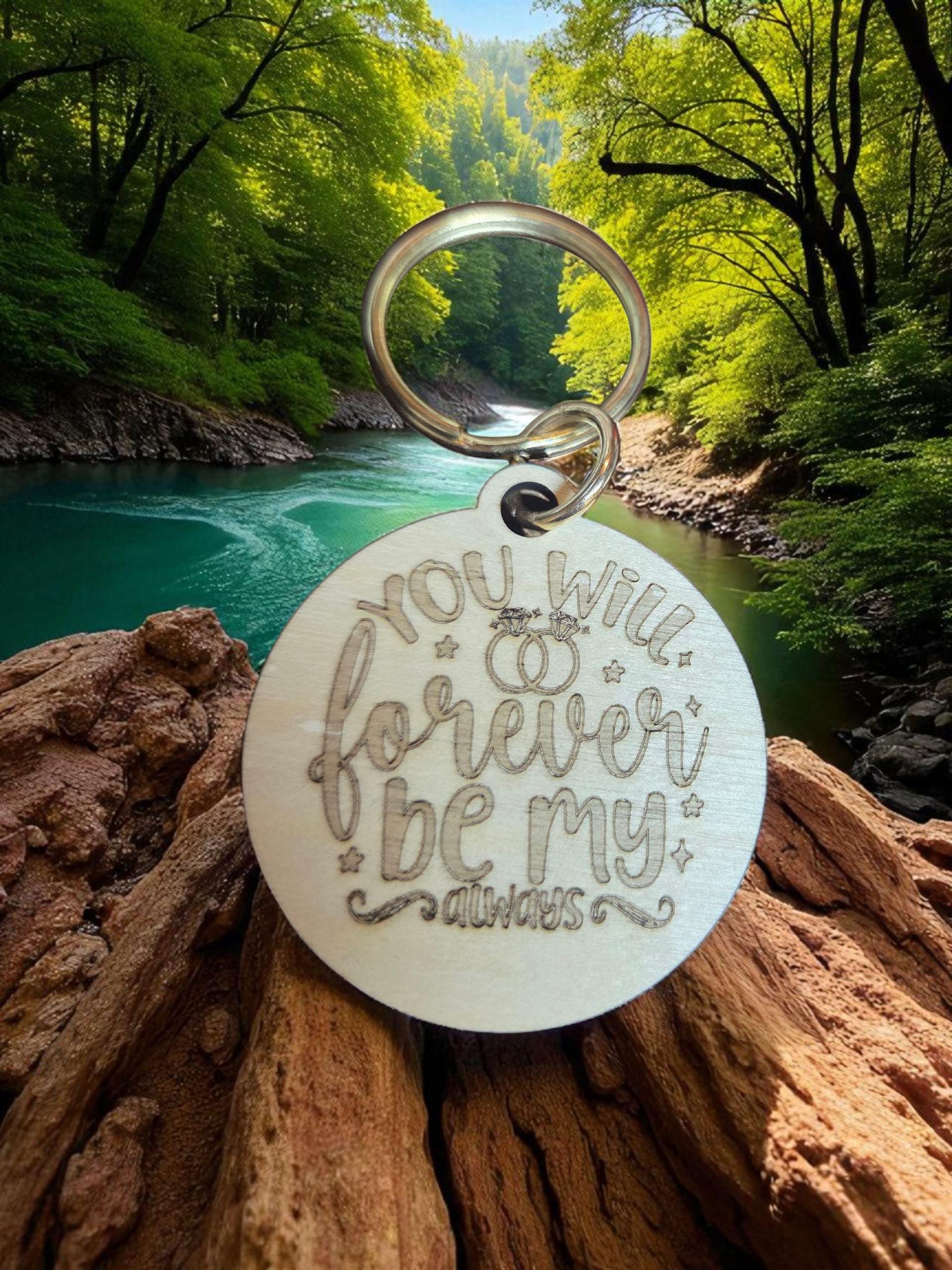"You Will Forever Be My Always" Keychain – Engraved Basswood with Gold Keyring (2")